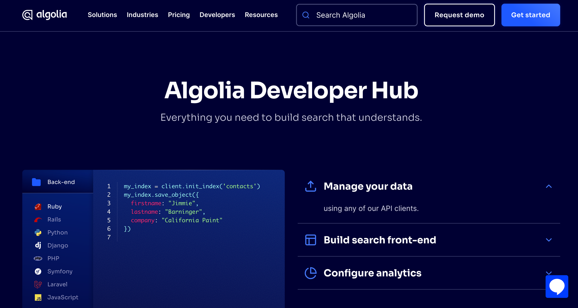 Check out Algolia's developer hub to see how they communicate - https://www.algolia.com/developers/