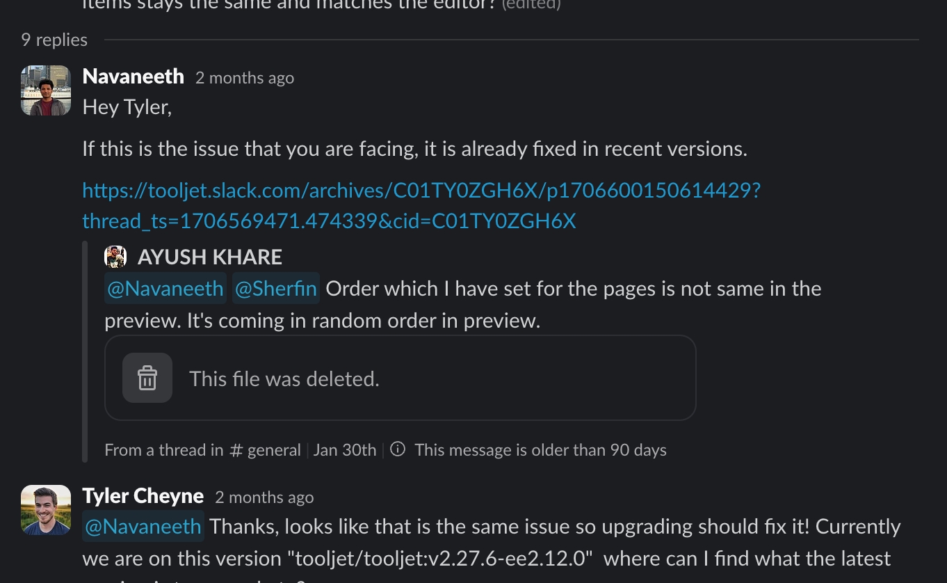 Tooljetโs Slack community was established to foster direct interaction between the team and its users. Slack provided a platform for real-time support, discussions, and collaboration. It became a space where users could share their experiences, ask for help, and connect with other developers using Tooljet.