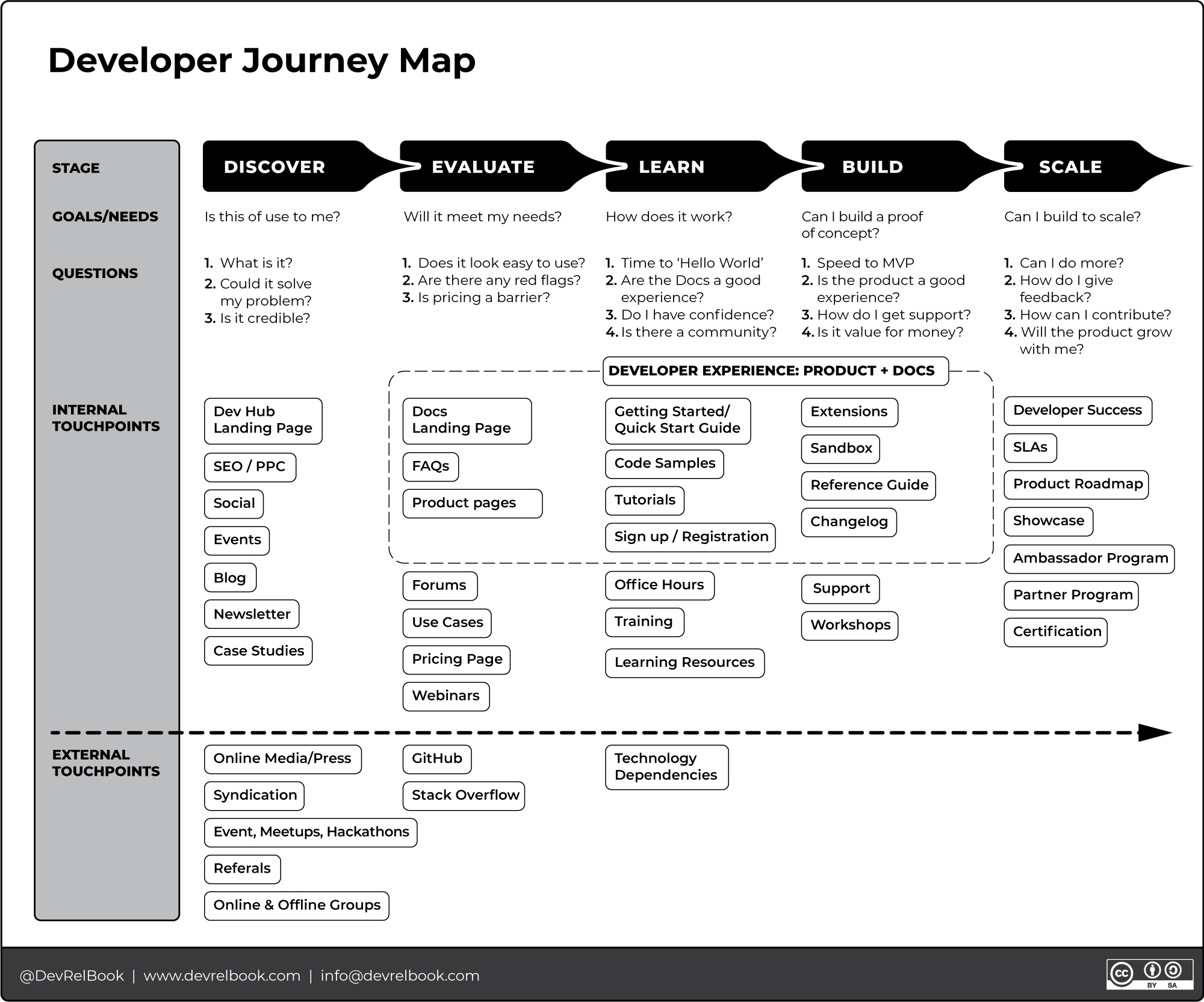 It is like a roadmap that guides you through how developers interact with your company. It helps you understand where they are and where they need to go.